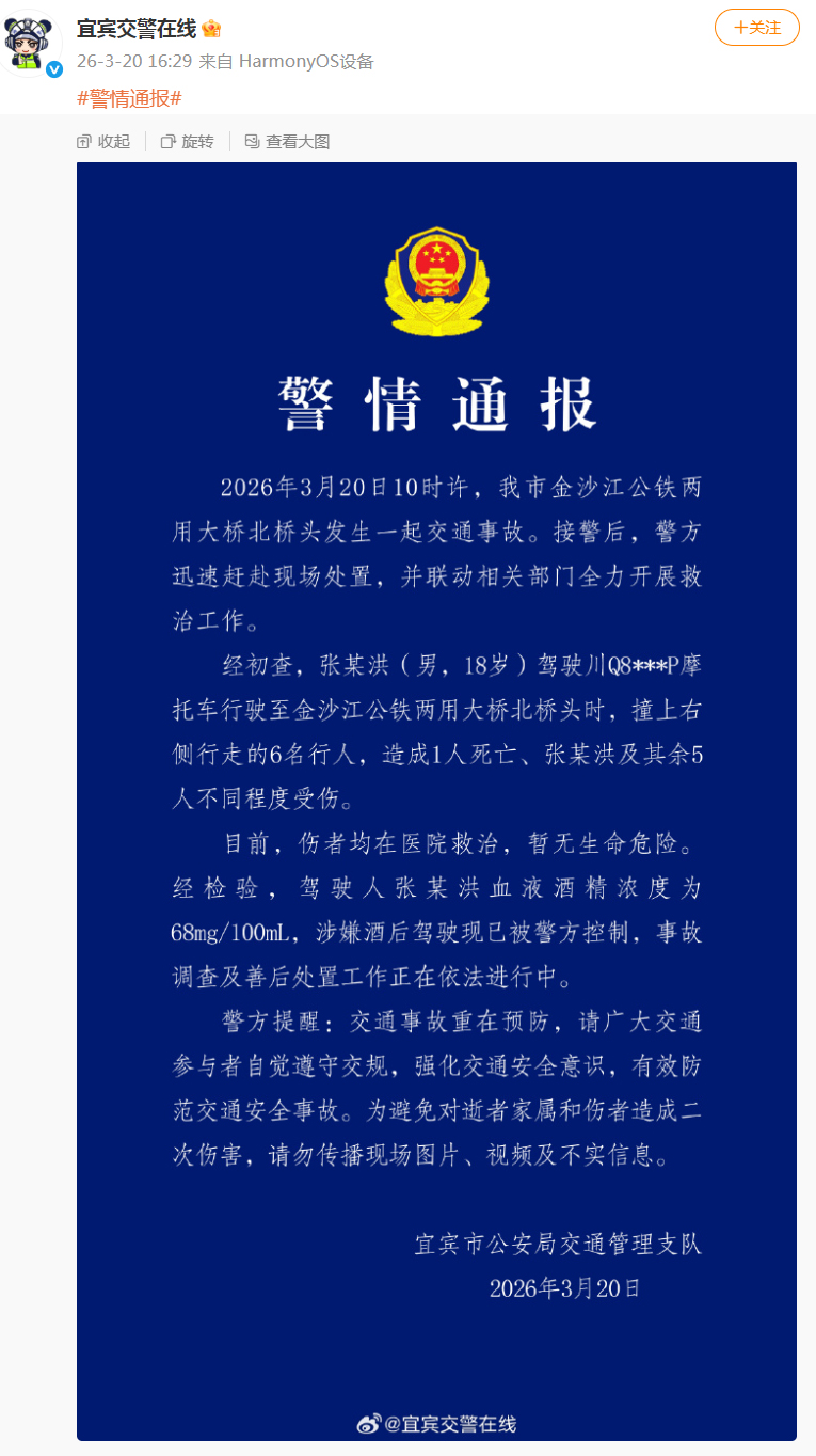3月20日外盘配资公司,@宜宾交警在线 发布一则警情通报: