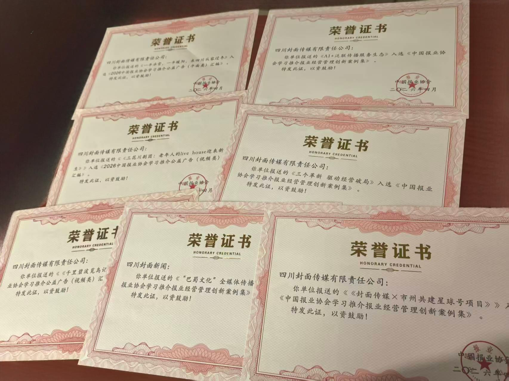 封面新闻获奖证书